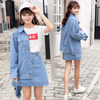 薇侣2017新品秋款新韩版原宿风纯色牛仔外套+短裙套装女