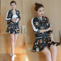 薇侣2017新品秋装女学生韩版印花两件套外套棒球服外套+短裙套装