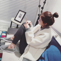 莞馨鹿皮绒短款外套韩国女2017冬季新款韩版加厚拼接羊羔毛呢子大衣潮