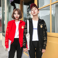 顺崇2018春装新款加绒字母情侣印花口袋运动拉链连帽