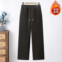 新款妈妈冬装松紧腰保暖直筒裤子中老年女装加绒加厚毛呢长裤
