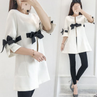 莞馨(wanxin)新款2016秋季新款女装韩版宽松A字版7分袖蝴蝶结显瘦中长款风衣外套女