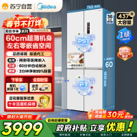 上菱435升十字对开四开门大容量家用电冰箱 60cm超薄平嵌底部前置散热 BQE435PWFL(岩白)