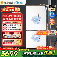 [自营]美的冰箱571升十字无缝平嵌双变频一级能效净味抗菌干湿分储冰箱BCD-571WUSPZM(E) 流苏白
