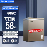 志高一级能效小冰柜58升家用小型全冷冻迷你节能微霜商用冷柜(金色)