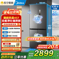 [自营]美的冰箱M60系列纯平全嵌十字四开门冰箱MR-457WUSPZE苍穹灰大容量436升一级双变频家用冰箱 以旧换新