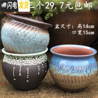 三维工匠花盆大口径陶瓷紫砂简约多肉植物老桩盆绿萝花盆 褐色有色差 大花盆容器