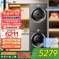 小天鹅水魔方洗烘套装 10KG滚筒洗衣机+变频热泵烘干机 蒸发器自清洁 纯平自由嵌TG10V628T+628T