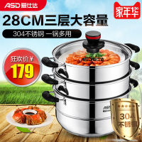 蒸锅 304不锈钢三层加厚家用复底28cm炖锅蒸笼通用3层锅具