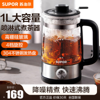 苏泊尔(SUPOR)煮茶器养生壶1L容量 喷淋式蒸茶壶手提茶篮高硼硅玻璃办公室恒温电热烧水壶旋钮调温 SW-10C05