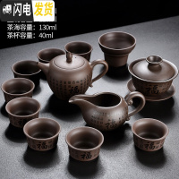 三维工匠家用百福紫砂功夫茶具套装简约泡茶壶茶杯茶海茶漏茶道配件 紫砂百福美人壶12头-礼盒装