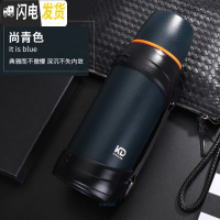三维工匠304不锈钢保温壶大容量2.5户外旅壶迷彩壶车载2保温杯 尚青色2.5+壶包