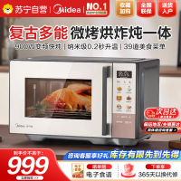 美的微烤一体23升F23F2台式微波炉左开门涂层内胆平板加热带烧烤功能