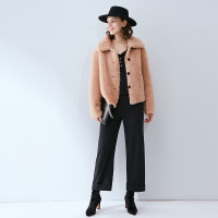 时髦范级美的肉桔色小翻领皮毛一体短外套