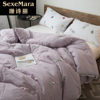 珊诗丽刺绣小雏菊小清新水洗棉冬被毛线绣花被芯可水洗羽丝绒加厚被子被芯-刺绣雏菊紫色220*240cm(北方暖气被7.4斤