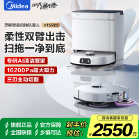 美的灵眸V15 Pro水箱版扫地机器人 极地白扫拖一体全自动清洗烘干活水洗拖布拖地机
