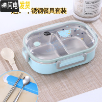 三维工匠儿童304不锈钢饭盒女小学生可爱便当盒少女心带盖中学生防烫餐盒 蓝色鱼2分格(送勺筷)