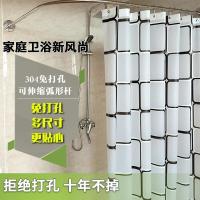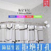敬平浴帘套装免打孔U型防水布淋浴房L弧形浴帘杆卫生间浴室隔断帘子
