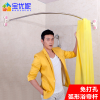 宝优妮弧形浴帘杆免打孔U型浴杆套装浴室帘杆卫生间L型转角撑杆