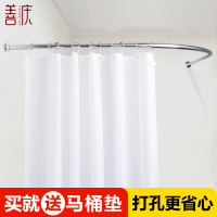 卫生间浴帘杆免打孔伸缩杆弧形浴帘套装厕所浴室不锈钢L形U型浴杆