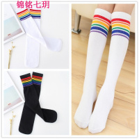 锦铭七玥男女儿童全棉中高筒袜彩虹条纹长筒过膝袜61学生足球袜子