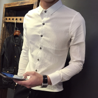 步来褶惠2017秋季纯色明线条暗褶皱纹路衬衫修身男夏