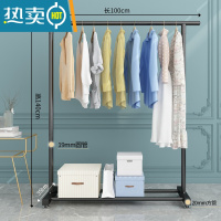 敬平简易衣帽架落地卧室内挂衣架家用单杆式移动置物折叠晾衣服的架子 1米黑色-加固款-19管粗晾晒架