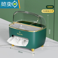 敬平纸巾盒轻奢客厅茶几餐厅收纳抽纸盒创意卧室桌面多功能遥控器盒子 轻奢绿镀金款[库存不足售完下架]