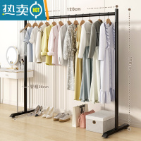 敬平晾衣架落地卧室内挂衣架折叠家用阳台晒衣服架子简易单杆式衣帽架 150cm⭐特粗双层-加固7钩-黑❤25管粗 大