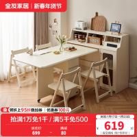 全友家居现代简约餐厅钢化玻璃岩板可选可伸缩餐桌方变圆功能圆餐桌椅