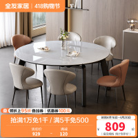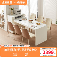 全友家居 可伸缩功能餐桌悬浮岩板台面实木框架餐桌餐椅组合套装