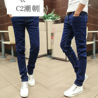 C2潮朝精神小伙高迪天佑2017春男士休闲裤牛仔裤潮韩版修身纯色小脚裤显瘦百搭长裤蓝色图片