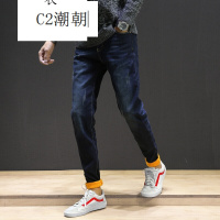 C2潮朝快手网红天佑四季秋冬男装裤子新款时尚男士牛仔裤潮男韩版修身牛仔长裤深蓝色
