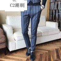 休闲裤男条纹长裤潮商务休闲西裤男小脚免烫正装裤子男修身西服裤