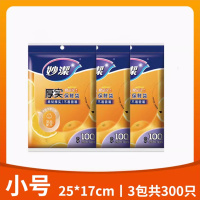 妙洁保鲜袋抽取式食品袋平口式PE加厚一次性家用微波炉加热小号3包共300只平口[25X17cm]