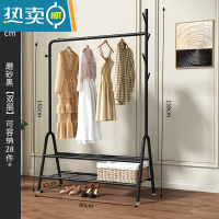 敬平挂衣架落地卧室简易晾衣服置物架子家用单杆式室内网红小型衣帽架 80cm宽-磨砂黑双层晾晒架
