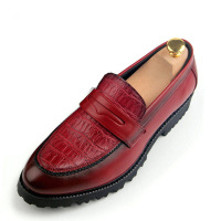 韩版皮鞋男士潮流男鞋发型师英伦风内增高套脚厚底松糕鞋春季复古做旧鳄鱼纹