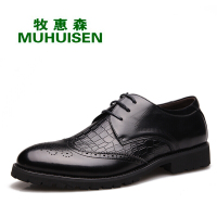 牧惠森2016布洛克雕花男鞋商务正装皮鞋圆头系带鞋子潮流婚鞋鳄鱼纹男士低帮鞋