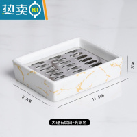 敬平ins北欧陶瓷香皂盒双层沥水肥皂盒卫生间304不锈钢长方形皂碟 大理石纹黑色+金色滤片