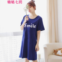 锦铭七玥新品夏季棉短袖大码宽松加肥中长款睡裙夏季全棉睡衣女士居服