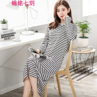 锦铭七玥睡裙女春秋棉长袖睡衣夏季全棉女士长款宽松大码长裙条纹居服