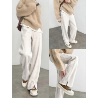 白色羊毛呢阔腿裤女秋冬季加绒新款窄版直筒小个子卫裤子