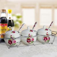 敏杨精品玫瑰花调味罐三件套 调料罐子 带架子赠勺子 盐罐鸡精调味粉统统都能用 精致厨房必备