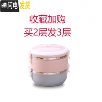 三维工匠304不锈钢多层保温桶饭盒便当盒1人便携餐盒套装上班族学生分隔型 2层蓝色+粉色收藏买2层发3层