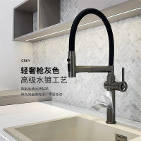 汉德斯科抽拉式伸缩面盆冷热水龙头枪灰色黑色可升降抽拉可旋转万向浴室柜洗头洗脸盆水龙头防溅水单把双控单孔台下盆龙头7013