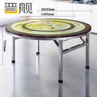 晋舰不锈钢内置转盘圆桌折叠圆桌带转盘1.6米内置1.1转盘全彩富贵有鱼