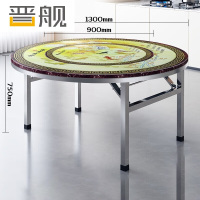 晋舰不锈钢内置转盘圆桌折叠圆桌带转盘1.3米内置0.9转盘全彩富贵有鱼