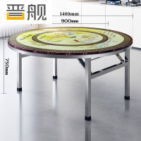 晋舰不锈钢内置转盘圆桌折叠桌带转盘1.4米内置0.9转盘全彩富贵有鱼