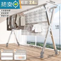 敬平晾衣架落地结实加厚铁架子晒床单不锈钢带轮客厅大号毛巾支架加粗 特厚不锈钢2.4米三杆[30风钩]
