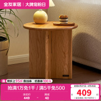 全友家居实木茶几原木风客厅阳台小圆桌沙发边几家用收纳桌
